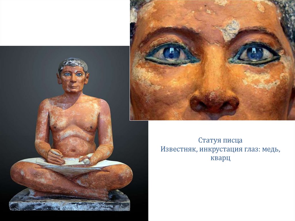 Статуя писцаИзвестняк, инкрустация глаз: медь,