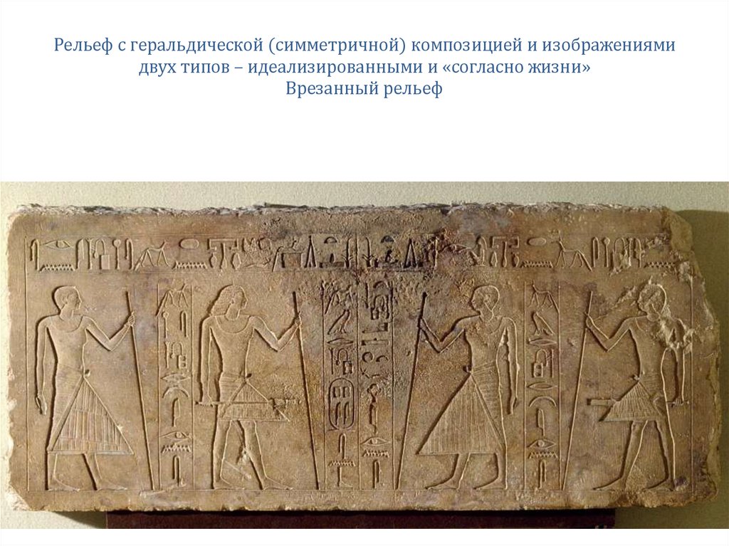 Рельеф с геральдической (симметричной) композицией и изображениямидвух типов – идеализированными и «согласно жизни»