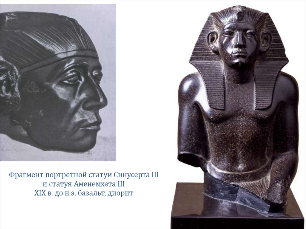 Фрагмент портретной статуи Синусерта IIIи статуя Аменемхета III