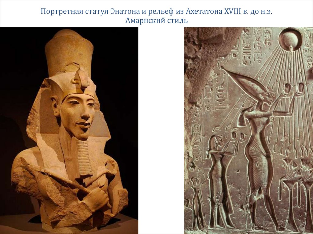 Портретная статуя Энатона и рельеф из Ахетатона XVIII в. до н.э.Амарнский стиль
