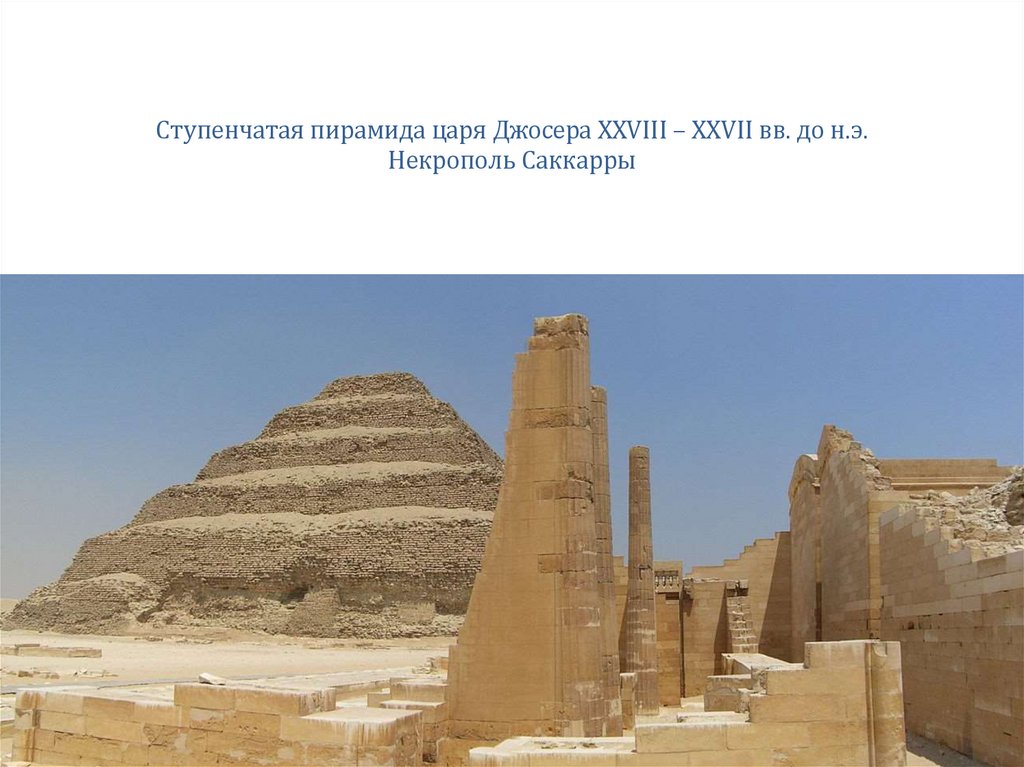 Ступенчатая пирамида царя Джосера XXVIII – XXVII вв. до н.э.Некрополь Саккарры