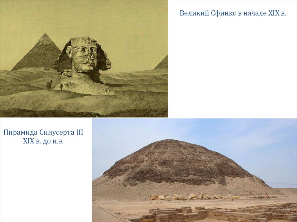 Великий Сфинкс в начале XIX в.Пирамида Синусерта III