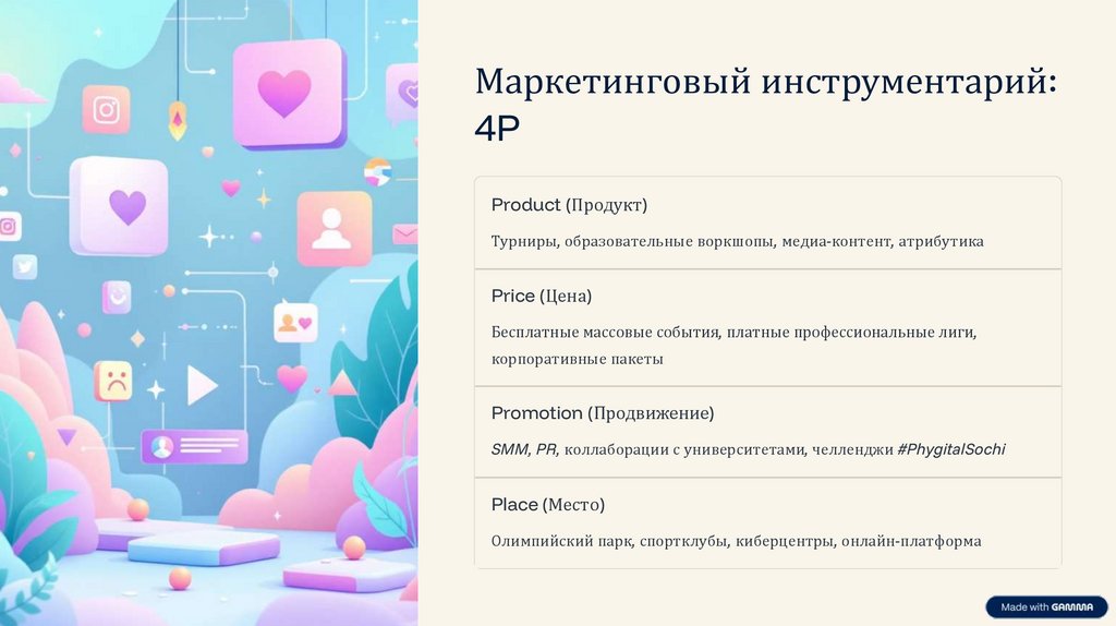 Турниры, образовательные воркшопы, медиа-контент, атрибутика