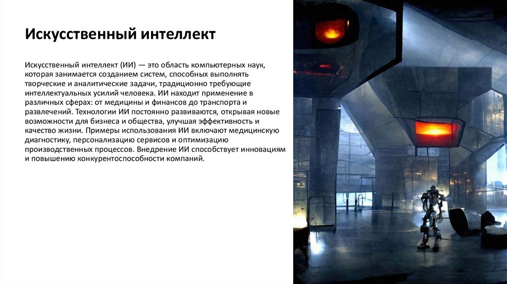 Искусственный интеллектИскусственный интеллект (ИИ) — это область компьютерных наук,