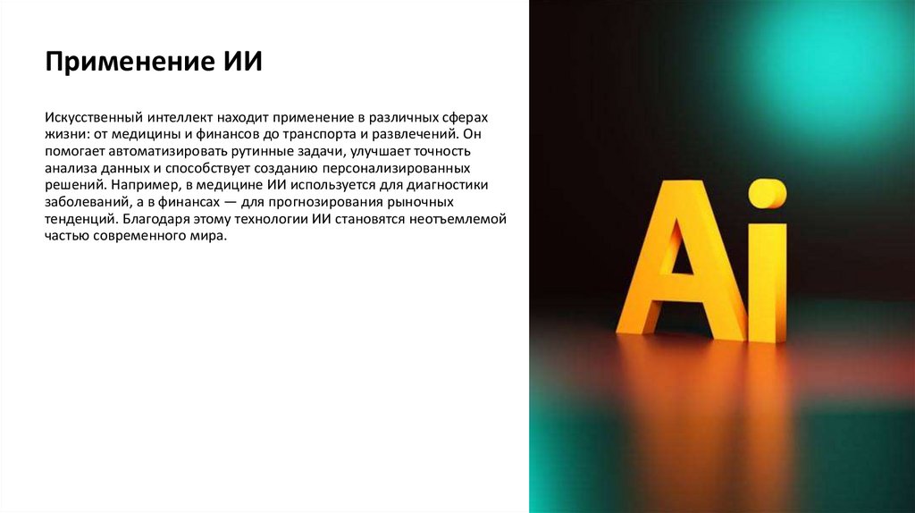 универсальным, адаптируясь к различным ситуациям. ИИ находит применение в медицине, финансах,