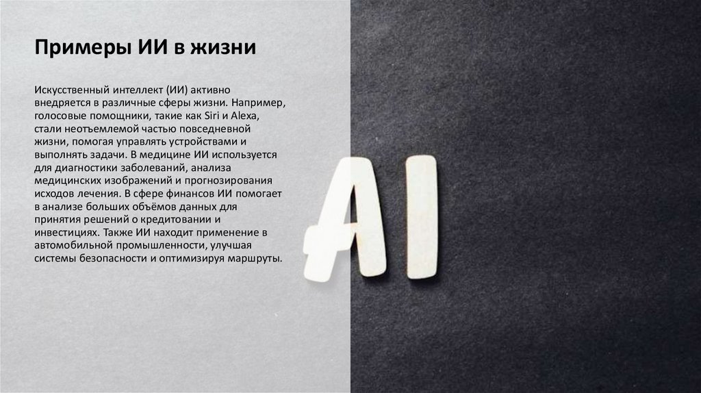 Примеры ИИ в жизниИскусственный интеллект (ИИ) активно