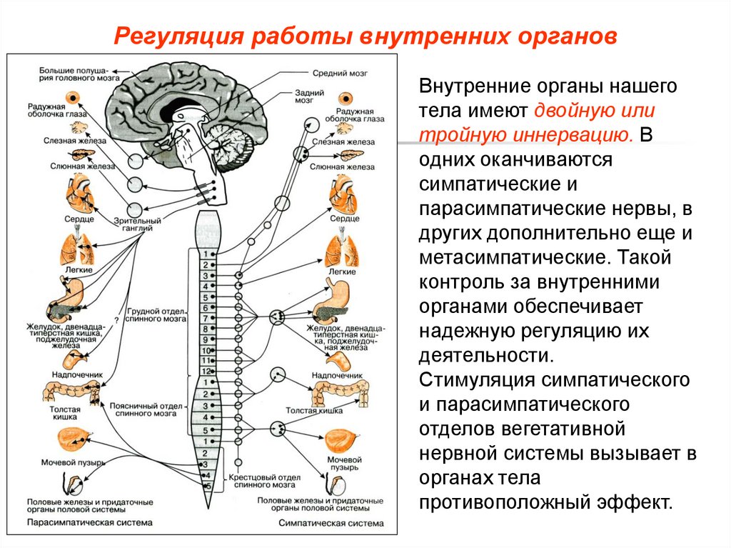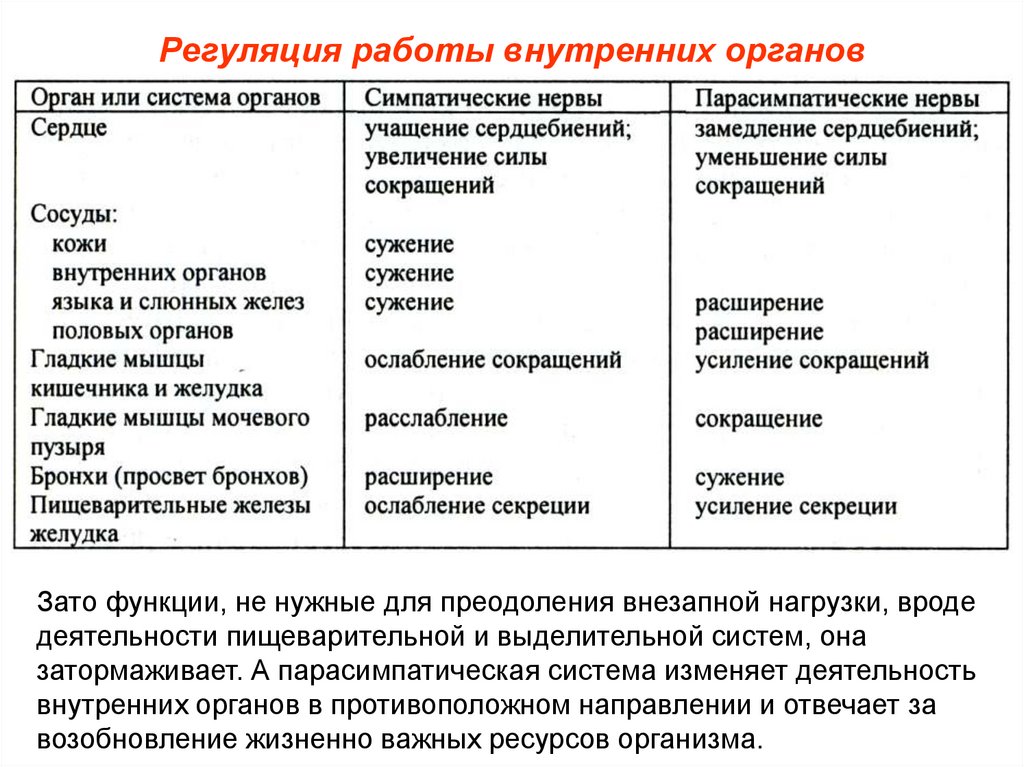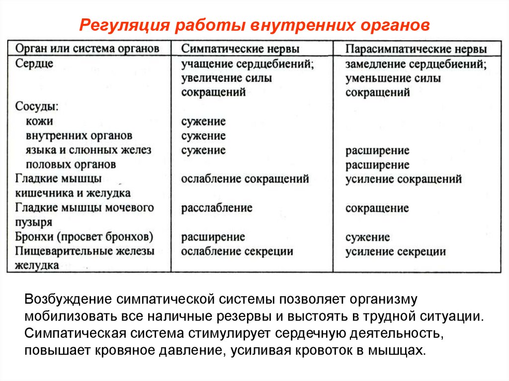 Регуляция работы внутренних органовВозбуждение симпатической системы позволяет организму