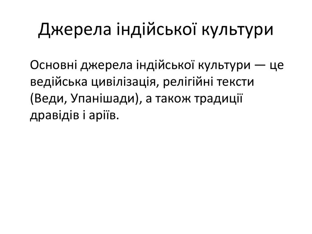 Джерела індійської культуриОсновні джерела індійської культури — це