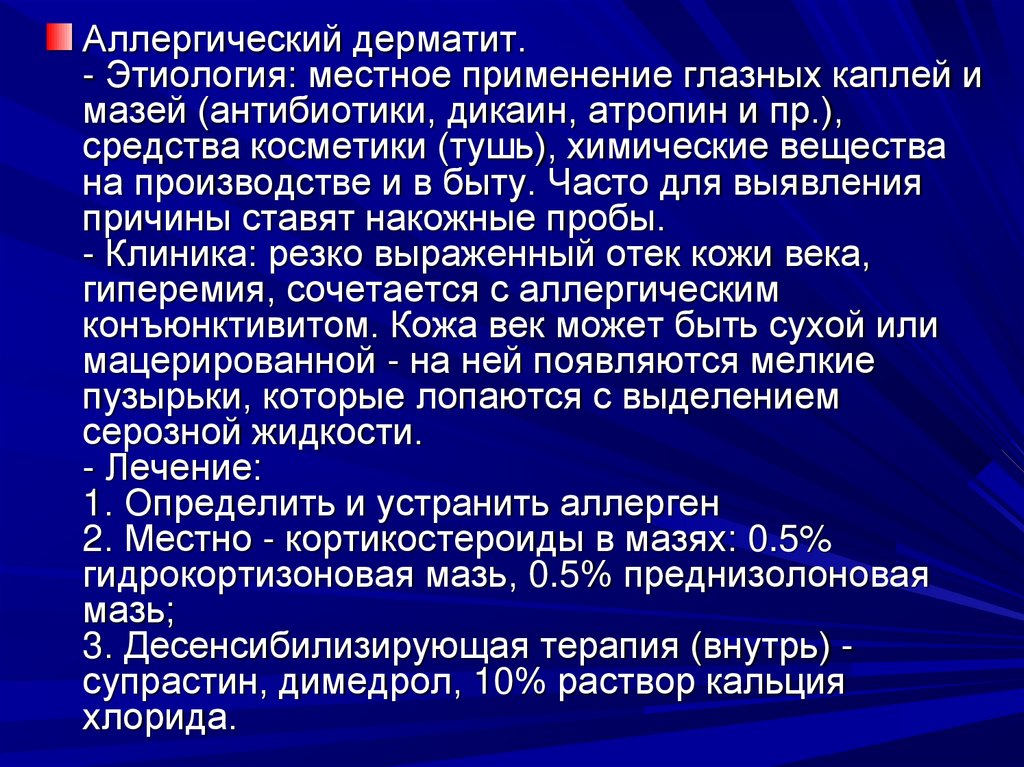 Аллергический дерматит.- Этиология: местное применение глазных каплей и