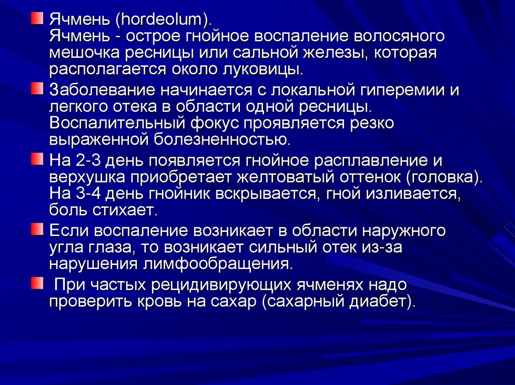 Ячмень (hordeolum).Ячмень - острое гнойное воспаление волосяного