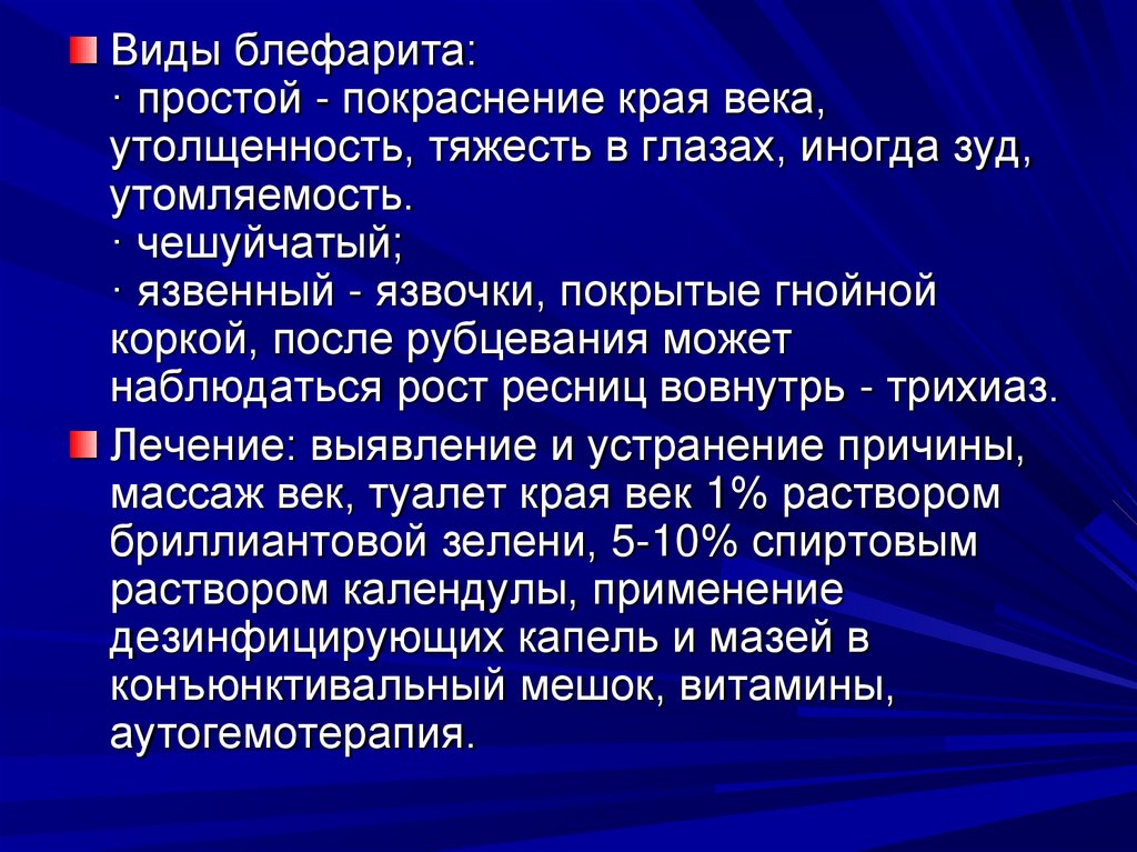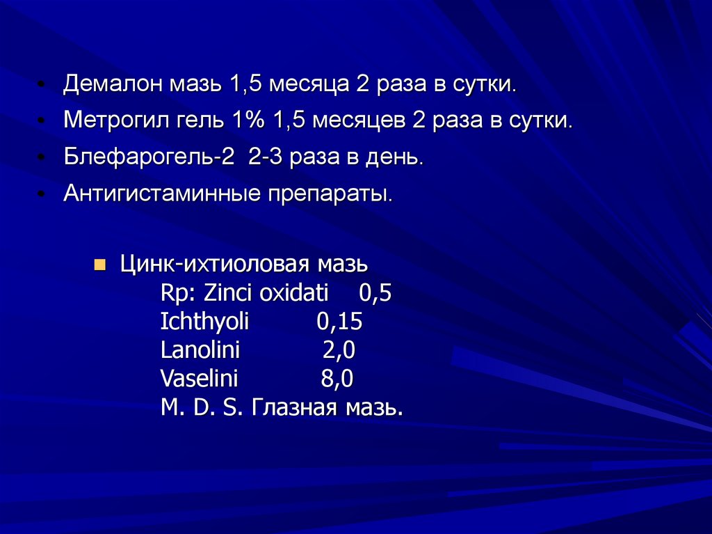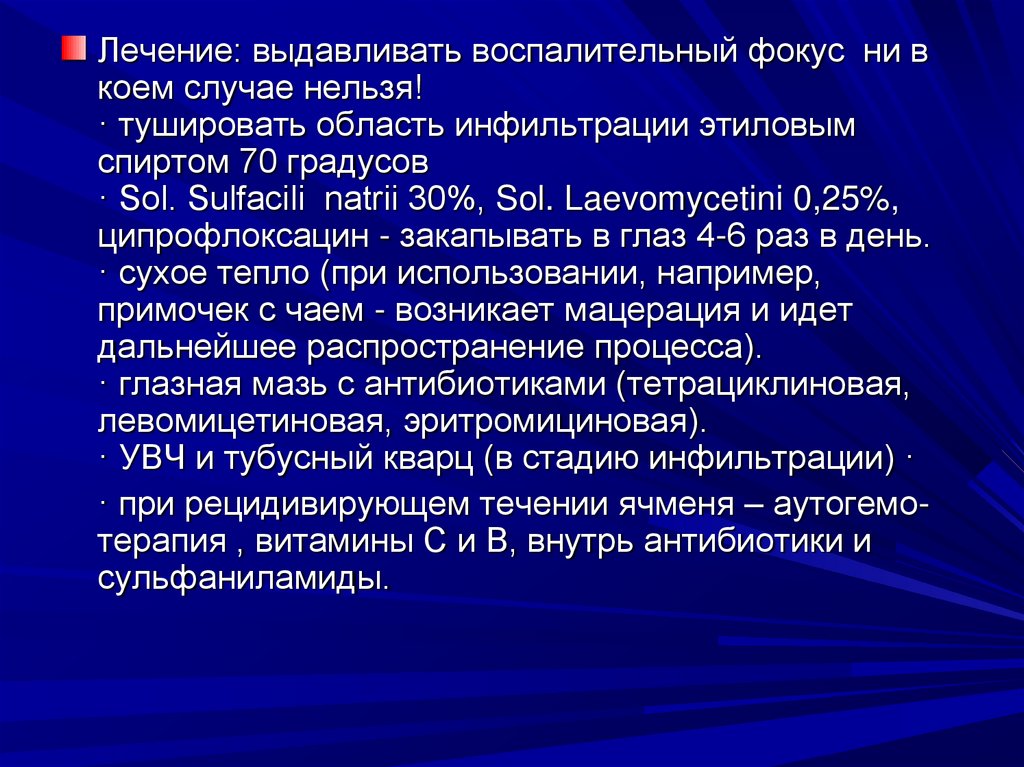 · при рецидивирующем течении ячменя – аутогемотерапия , витамины С и В, внутрь антибиотики и