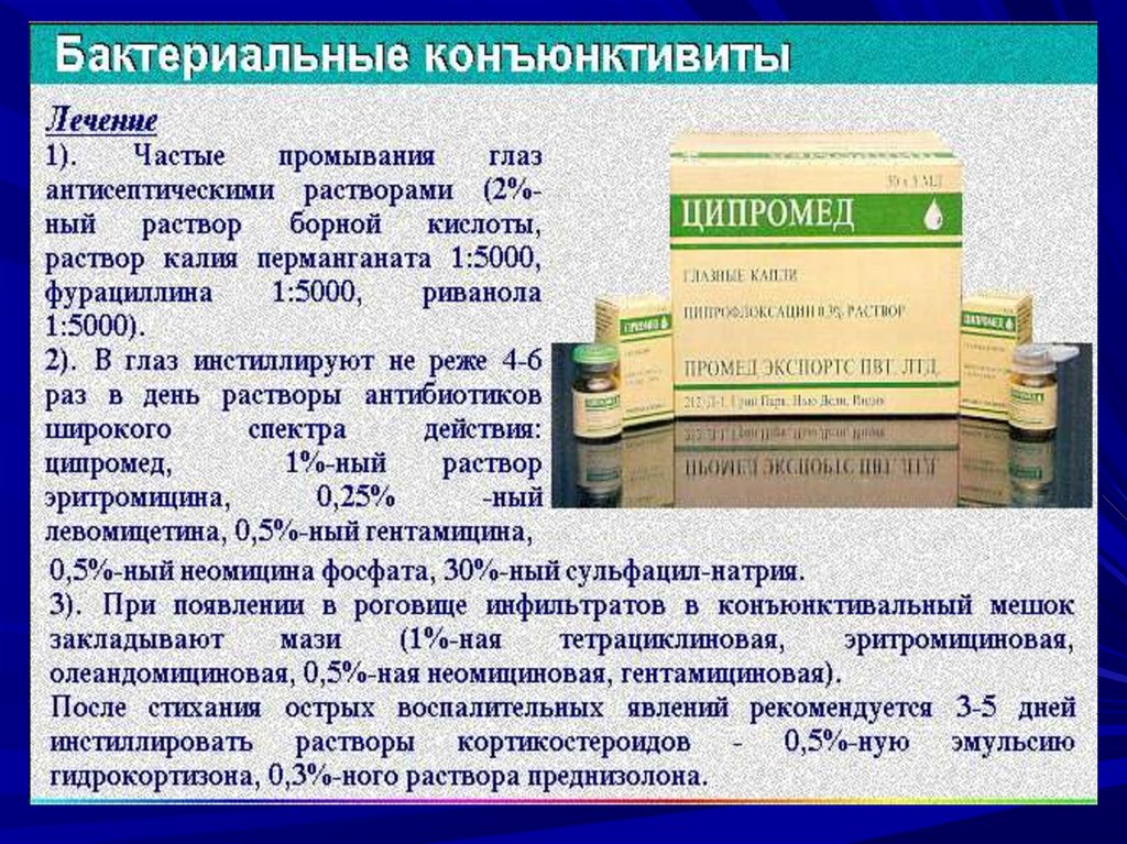 ципрофлоксацин - закапывать в глаз 4-6 раз в день.