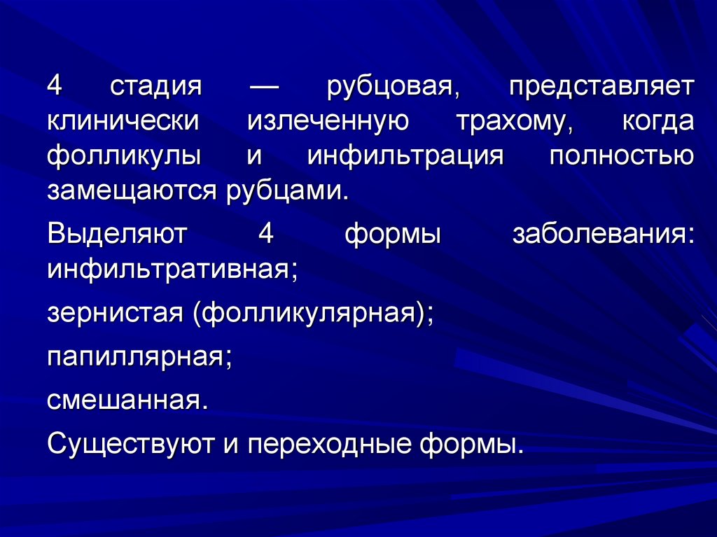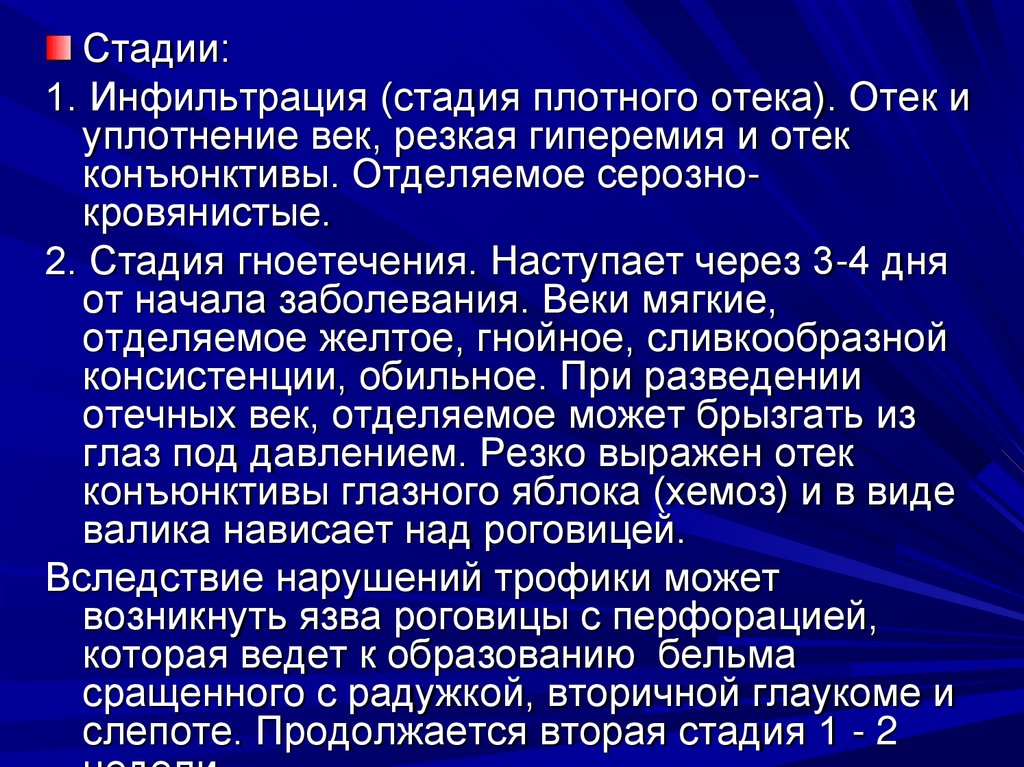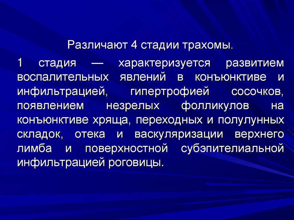 Различают 4 стадии трахомы.1 стадия — характеризуется развитием