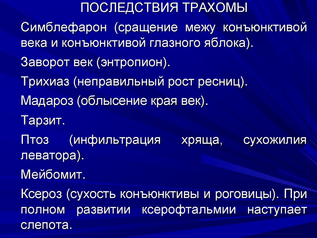 ПОСЛЕДСТВИЯ ТРАХОМЫСимблефарон (сращение межу конъюнктивой