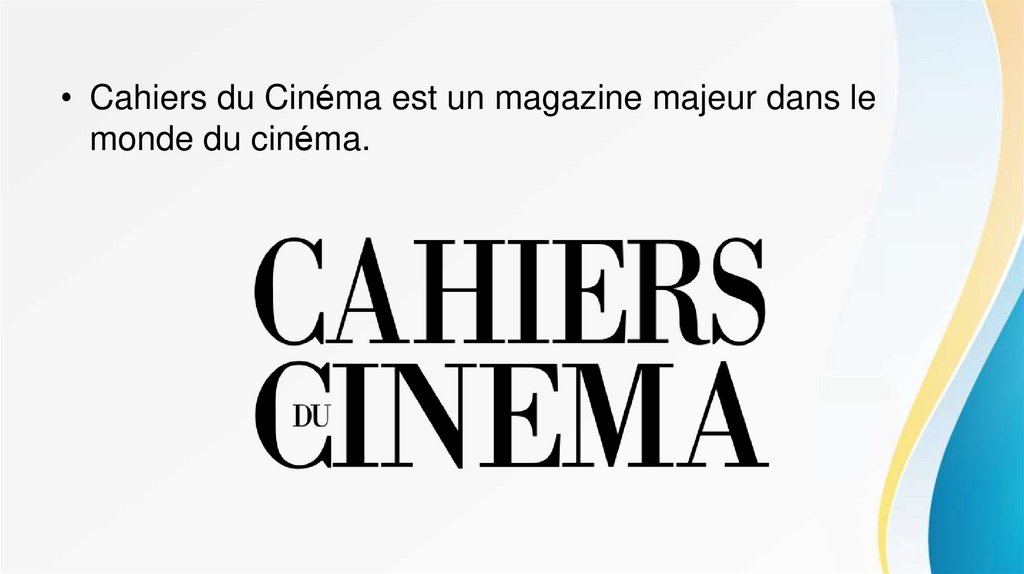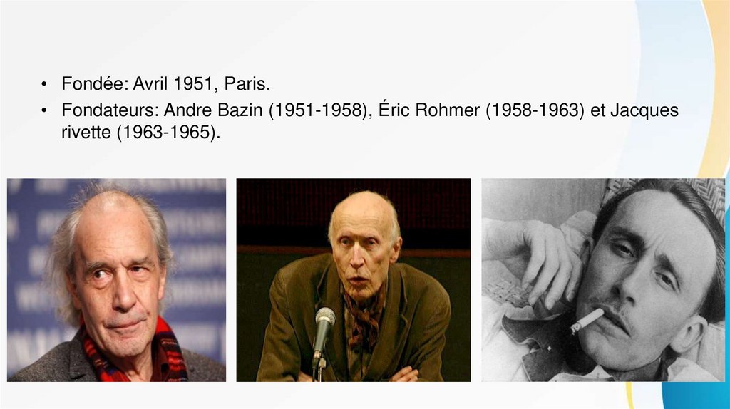• Fondateurs: Andre Bazin (1951-1958), Éric Rohmer (1958-1963) et Jacques