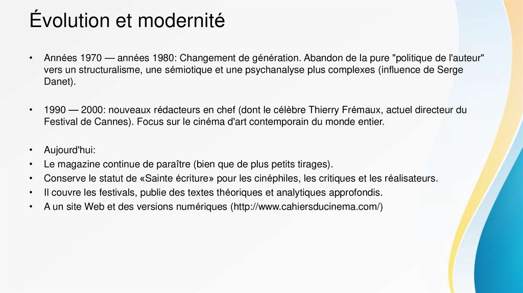 A un site Web et des versions numériques (http://www.cahiersducinema.com/)