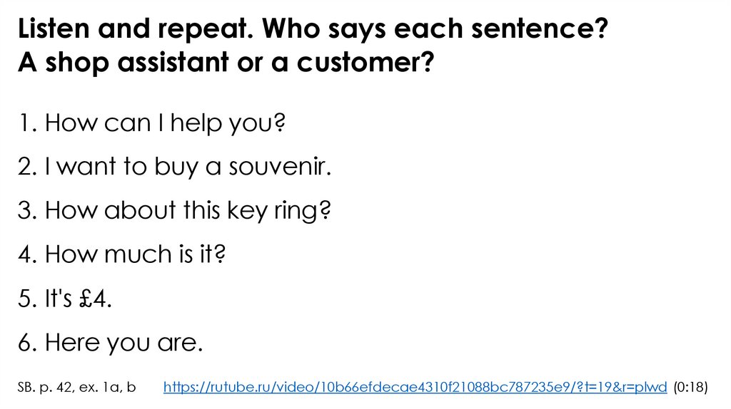 Listen and repeat. Who says each sentence?A shop assistant or a customer?