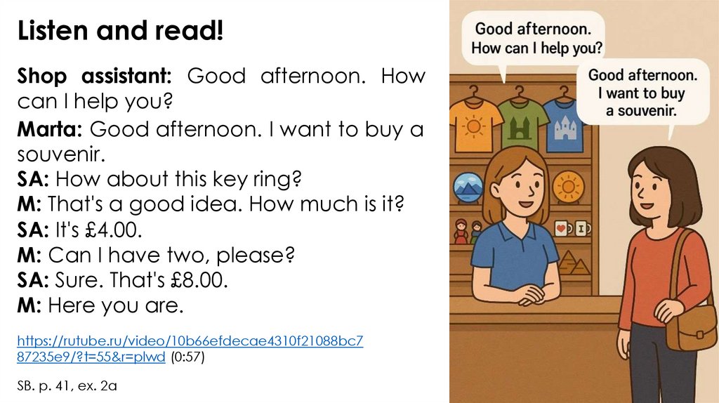 Listen and read!Shop assistant: Good afternoon. How