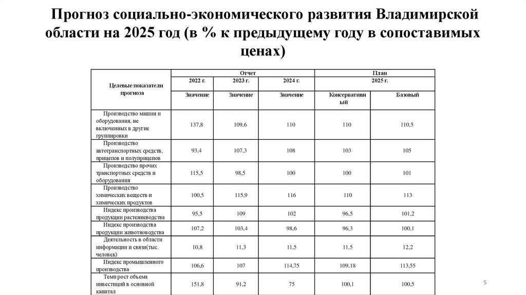 Прогноз социально-экономического развития Владимирскойобласти на 2025 год (в % к предыдущему году в сопоставимых