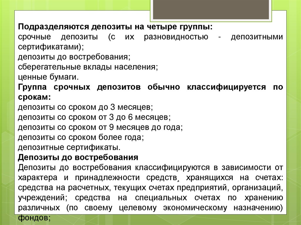 Вклад (депозит) - деньги, передаваемые одним лицом