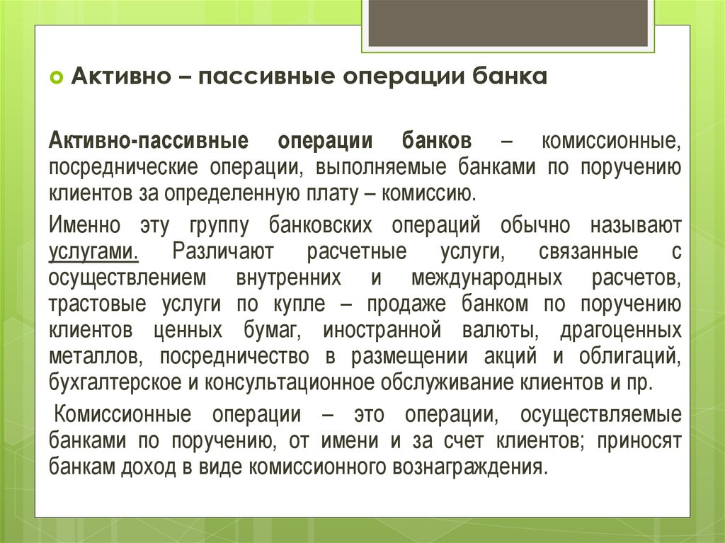Банковская операция — форма осуществления сделкимежду кредитной организацией и ее клиентом. Ее следует