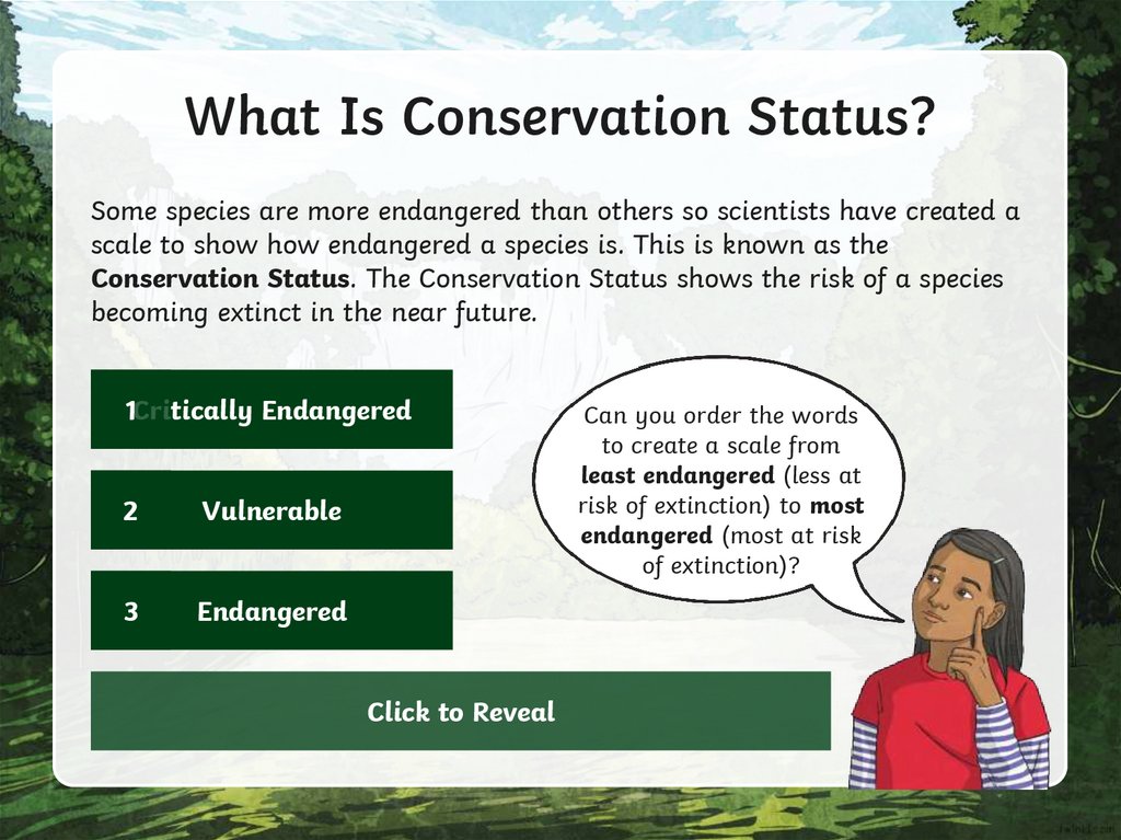 What Is Conservation Status?Some species are more endangered than others so scientists have created a