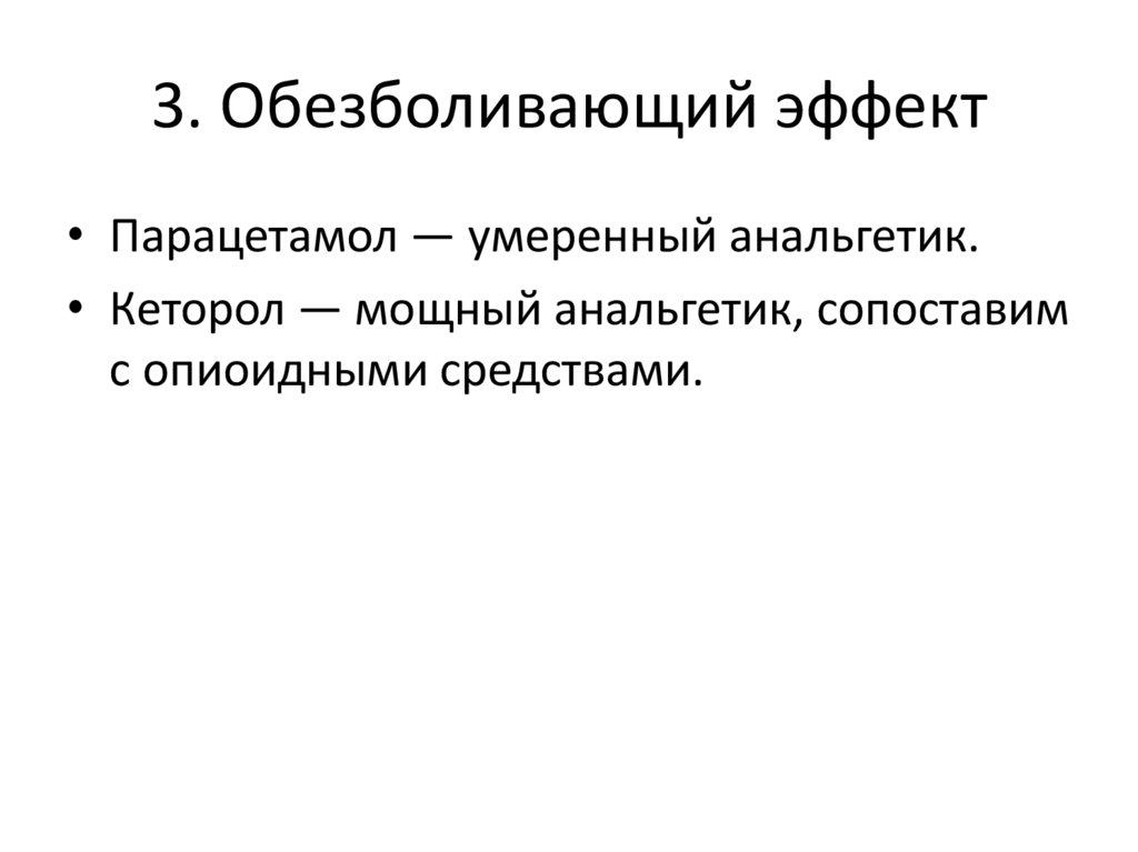 3. Обезболивающий эффект• Парацетамол — умеренный анальгетик.