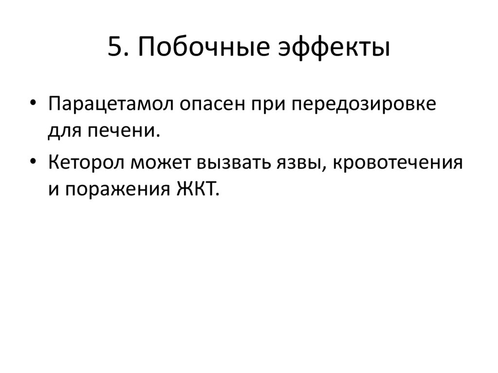 5. Побочные эффекты• Парацетамол опасен при передозировке