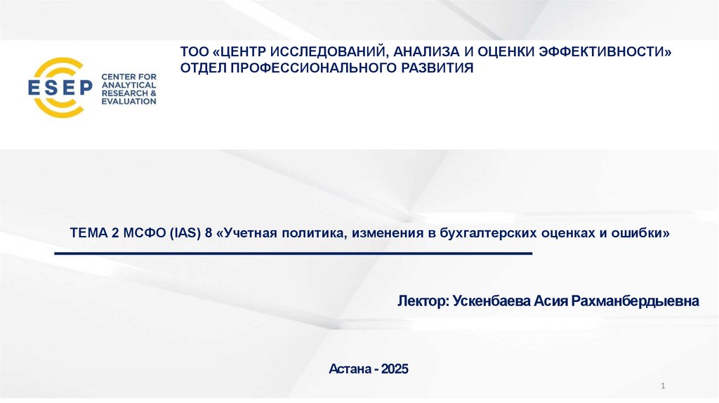 ТЕМА 2 МСФО (IAS) 8 «Учетная политика, изменения в бухгалтерских оценках и ошибки»