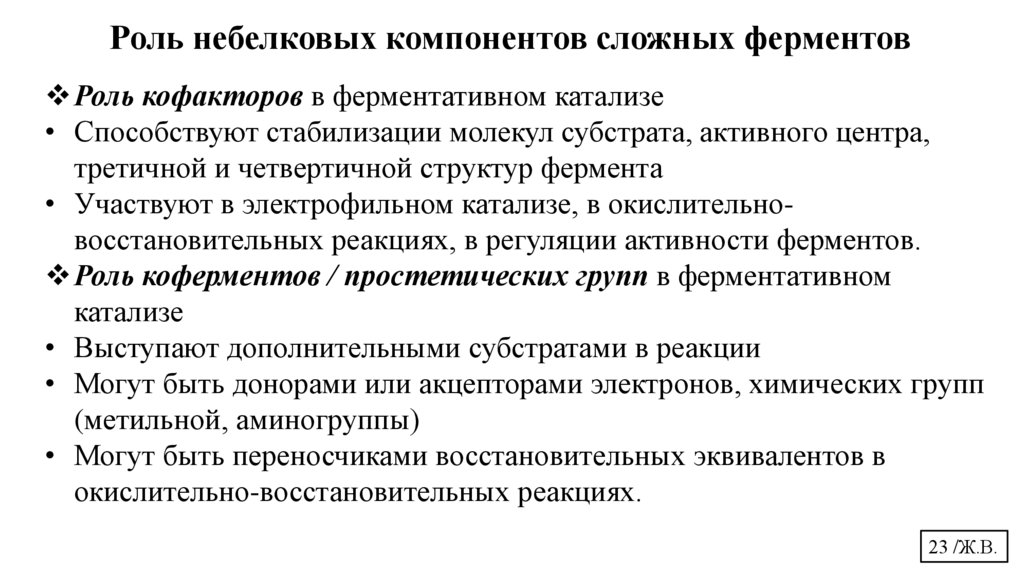 9. Строение АЦ простых и сложных ферментов. Небелковые компоненты сложных ферментов и их роль.