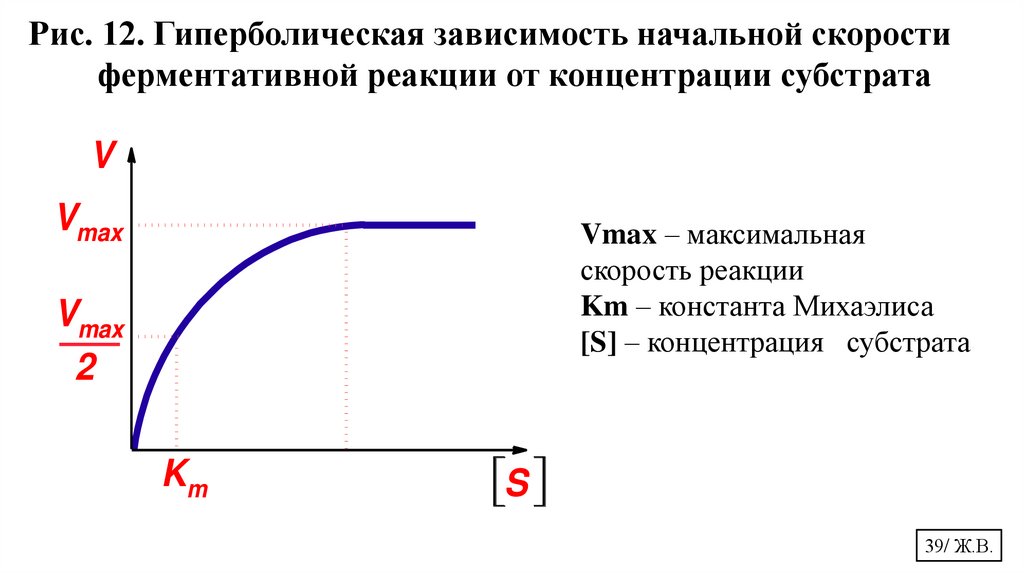 Рис. 14. Зависимость скорости ферментативной реакции отконцентрации субстрата – уравнение Михаэлиса-Ментен