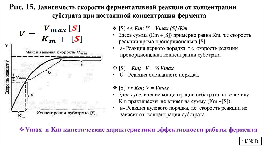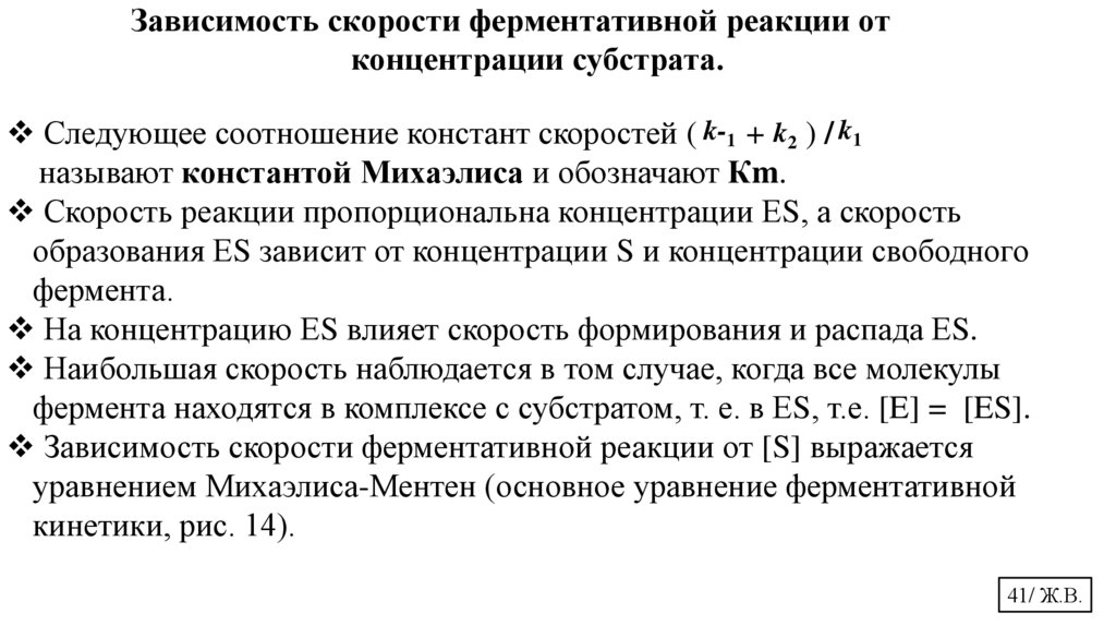 14. Кинетика ферментативных реакций.. Зависимость скорости ферментативной реакции от концентрации