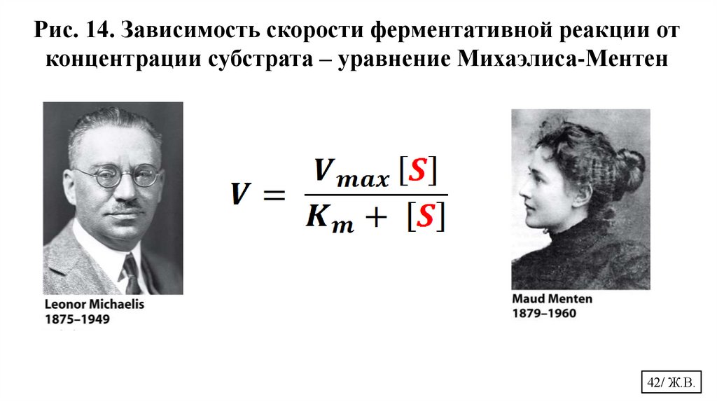16. Зависимость скорости ферментативной реакции от концентрации субстрата. Уравнение МихаэлисаМентен. Константа Михаэлиса.