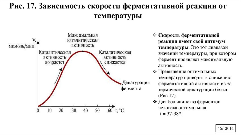 Рис. 17. Зависимость скорости ферментативной реакции оттемпературы