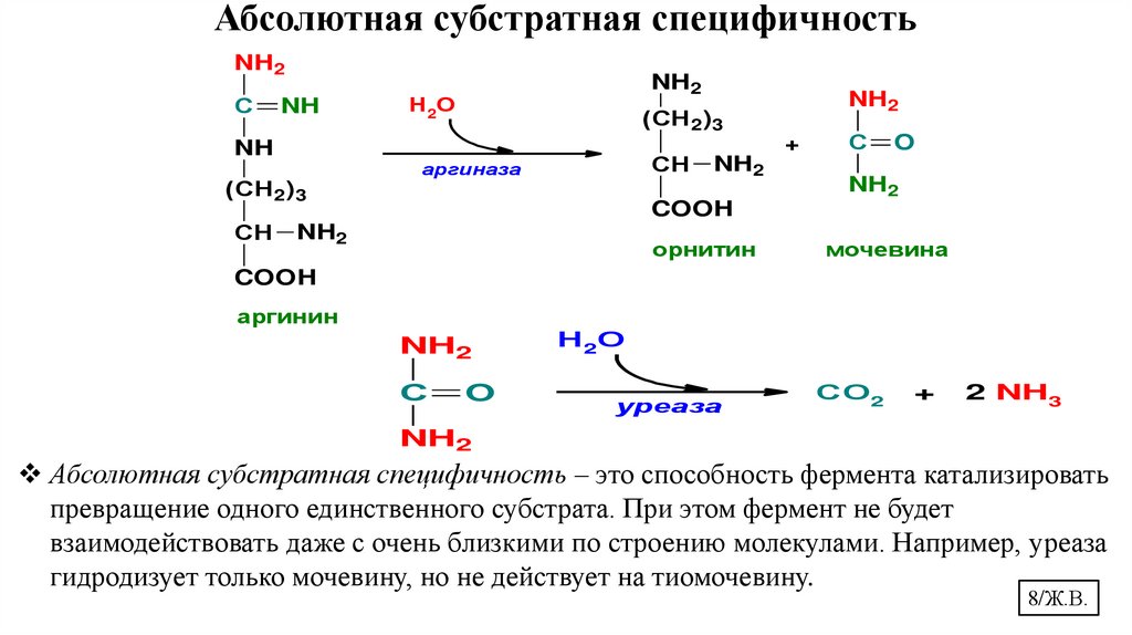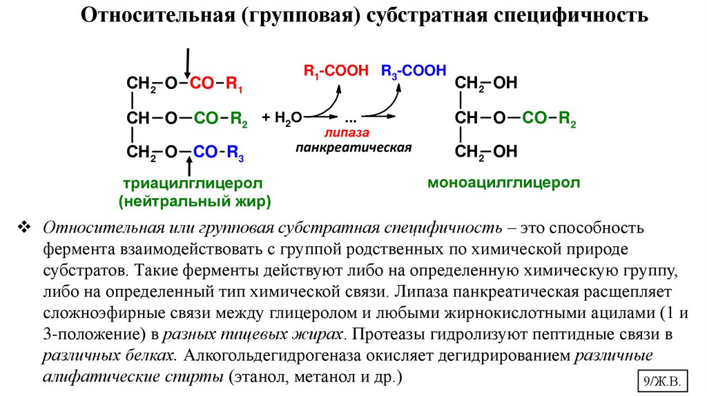 Функциональная значимость участков АЦ. Виды специфичности ферментов (абсолютная, групповая,