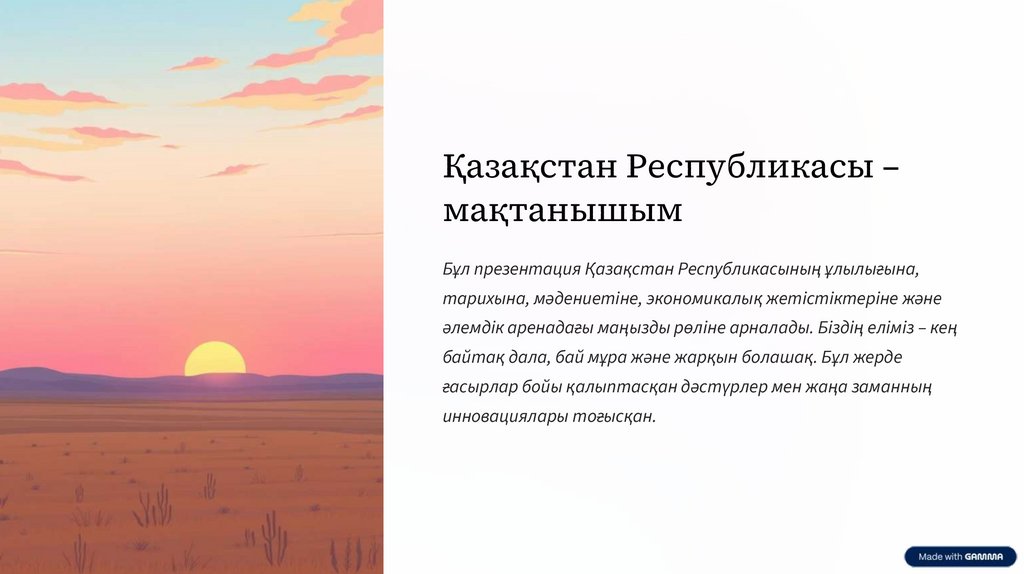 байтақ дала, бай мұра және жарқын болашақ. Бұл жерде
