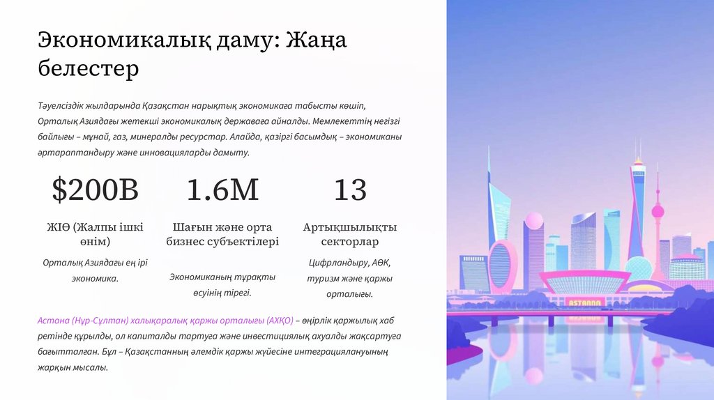 бағытталған. Бұл – Қазақстанның әлемдік қаржы жүйесіне интеграциялануының
