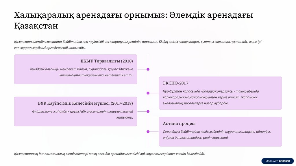 Қазақстанның дипломатиялық жетістіктері оның әлемдік аренадағы сенімді әрі жауапты серіктес екенін дәлелдейді.