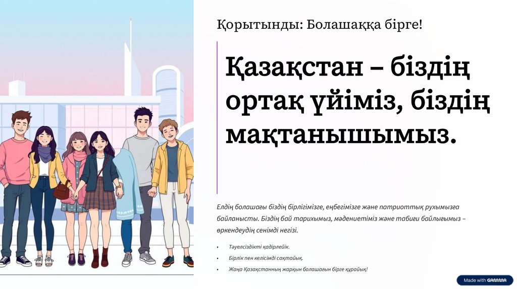 Қорытынды: Болашаққа бірге!Қазақстан – біздің