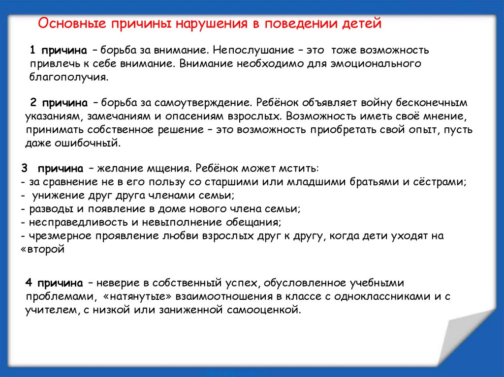 Основные причины нарушения в поведении детей1 причина – борьба за внимание. Непослушание – это тоже возможность