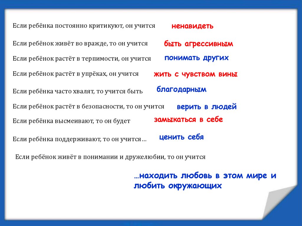 Если ребёнок живёт в понимании и дружелюбии, то он учится