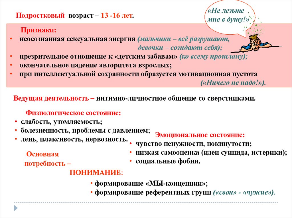 Подростковый возраст – 13 -16 лет.«Не лезьте