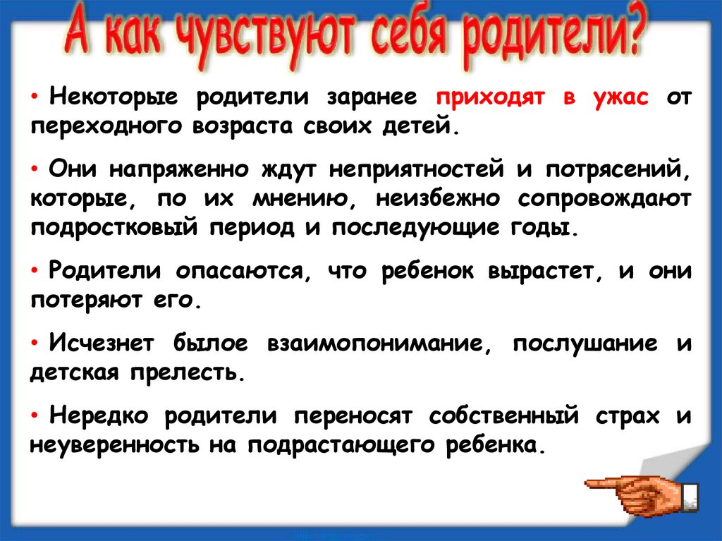 • Некоторые родители заранее приходят в ужас отпереходного возраста своих детей.