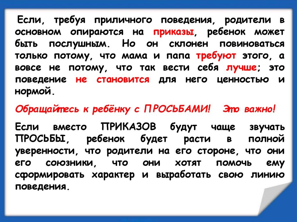 Обращайт есь к ребёнку с ПРОСЬБАМИ!