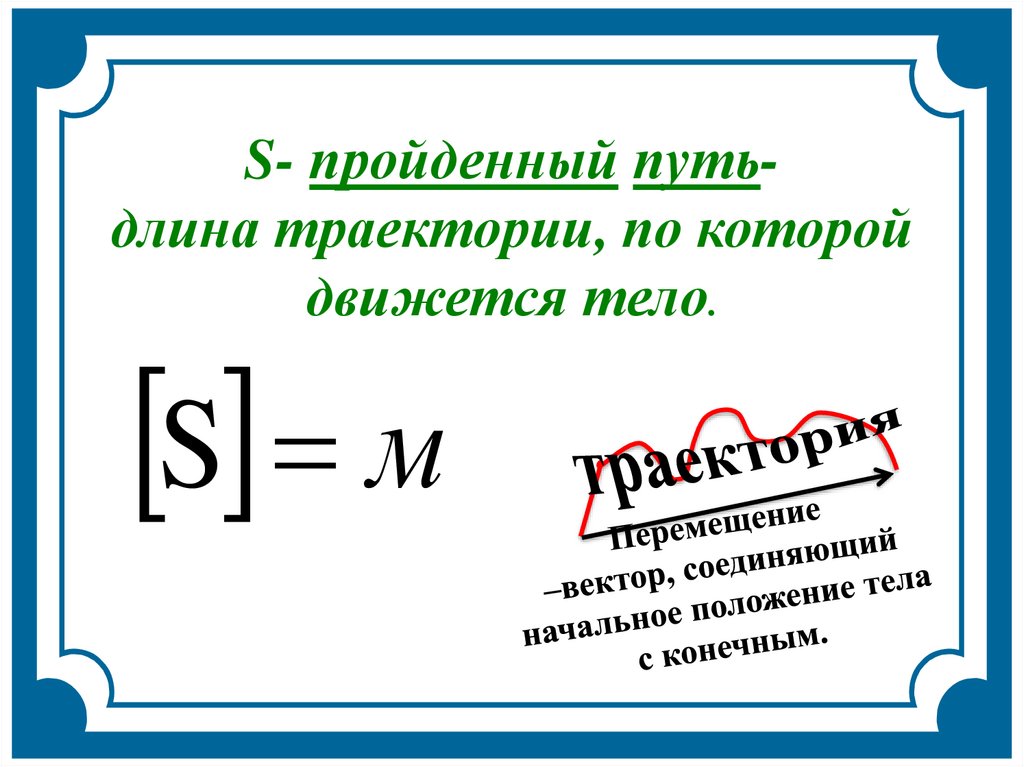 S- пройденный путьдлина траектории, по которойдвижется тело.