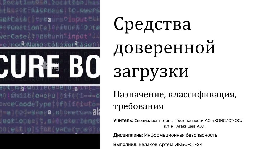 Учитель: Специалист по инф. безопасности АО «КОНСИСТ-ОС»