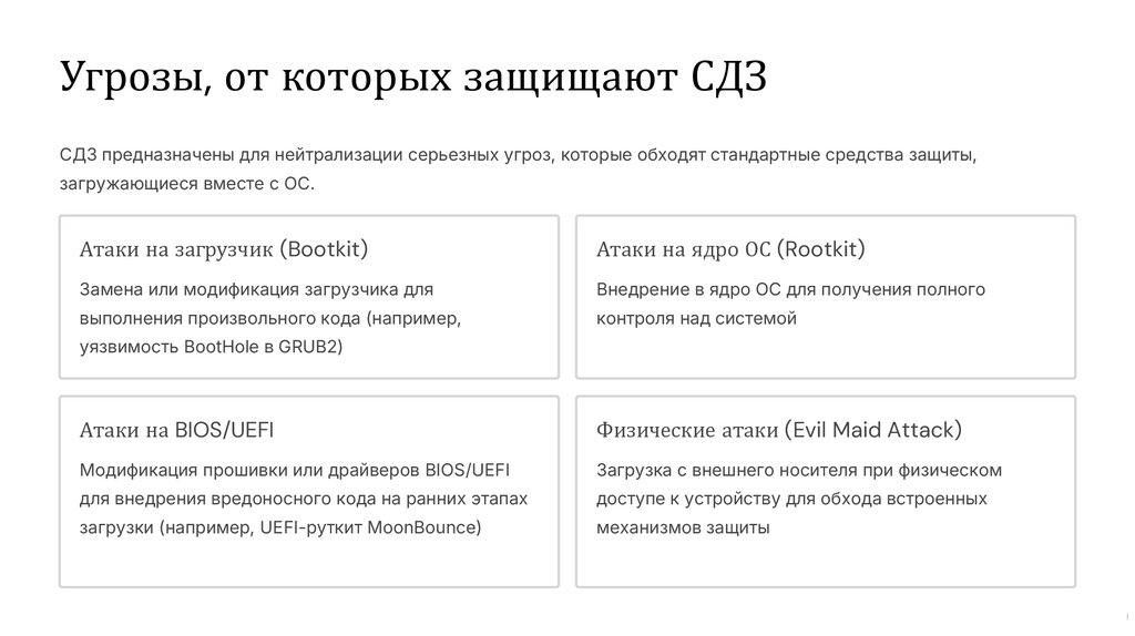 Защита процесса загрузки ОС от sophisticated-атак, которые требуют высокой подготовки злоумышленников и/или
