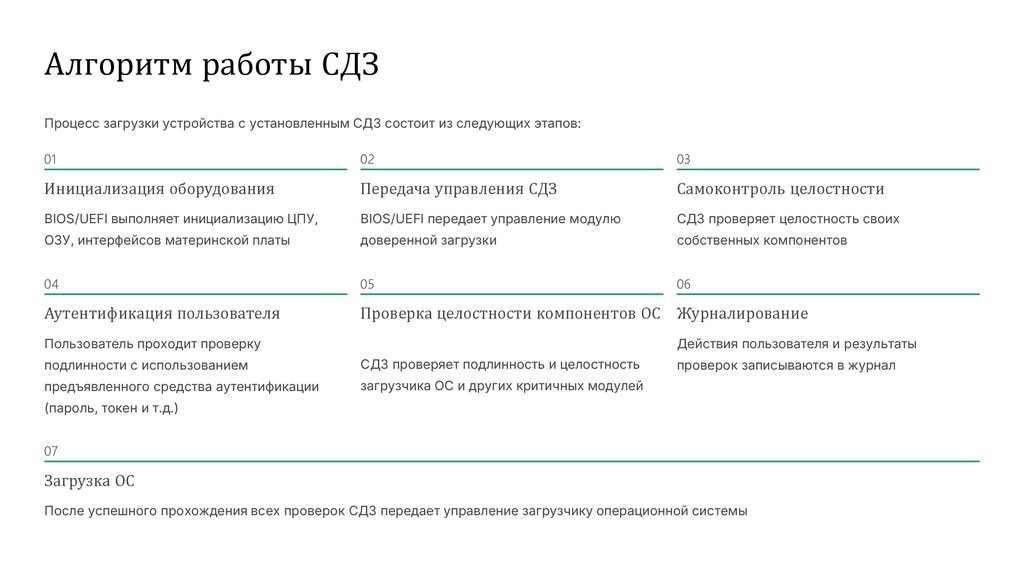 Алгоритм работы СДЗПроцесс загрузки устройства с установленным СДЗ состоит из следующих этапов: