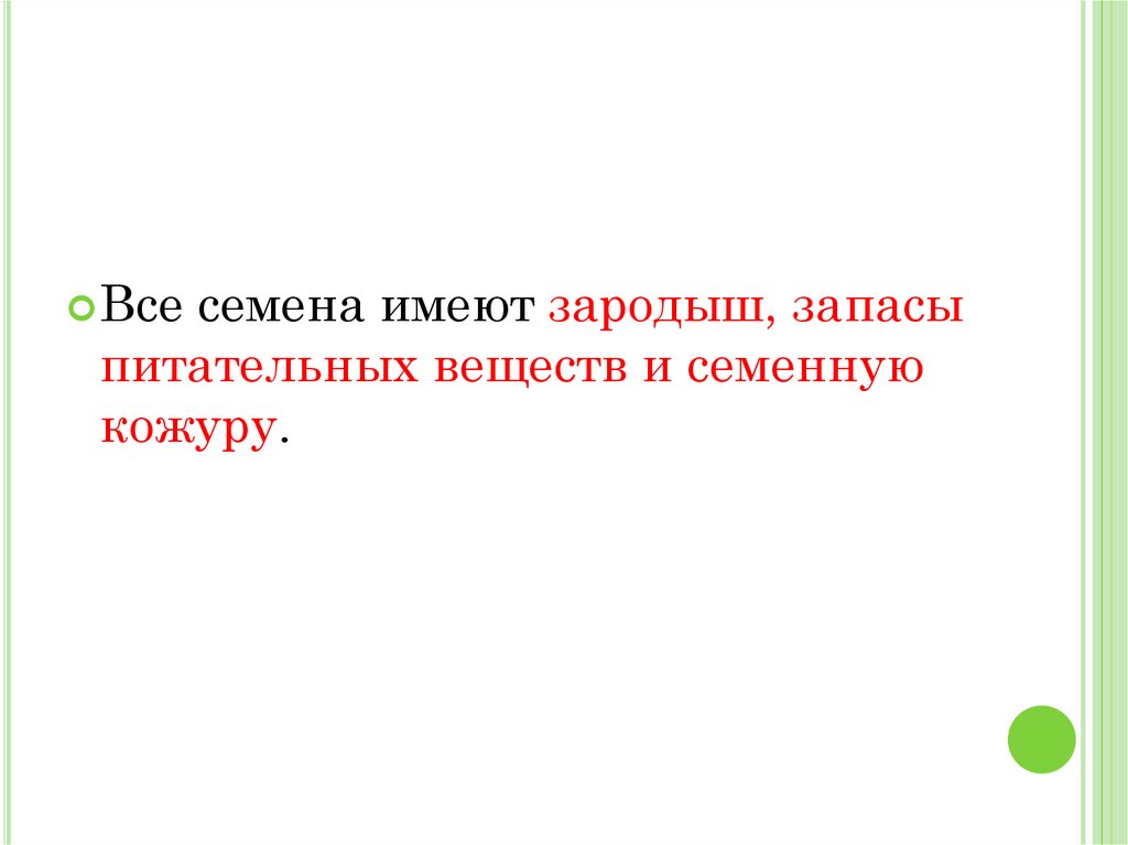Все семена имеют зародыш, запасыпитательных веществ и семенную
