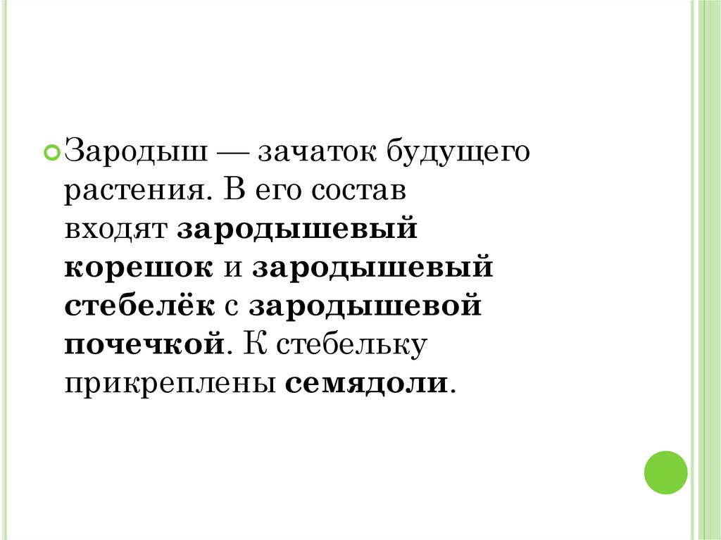 Зародыш — зачаток будущегорастения. В его состав